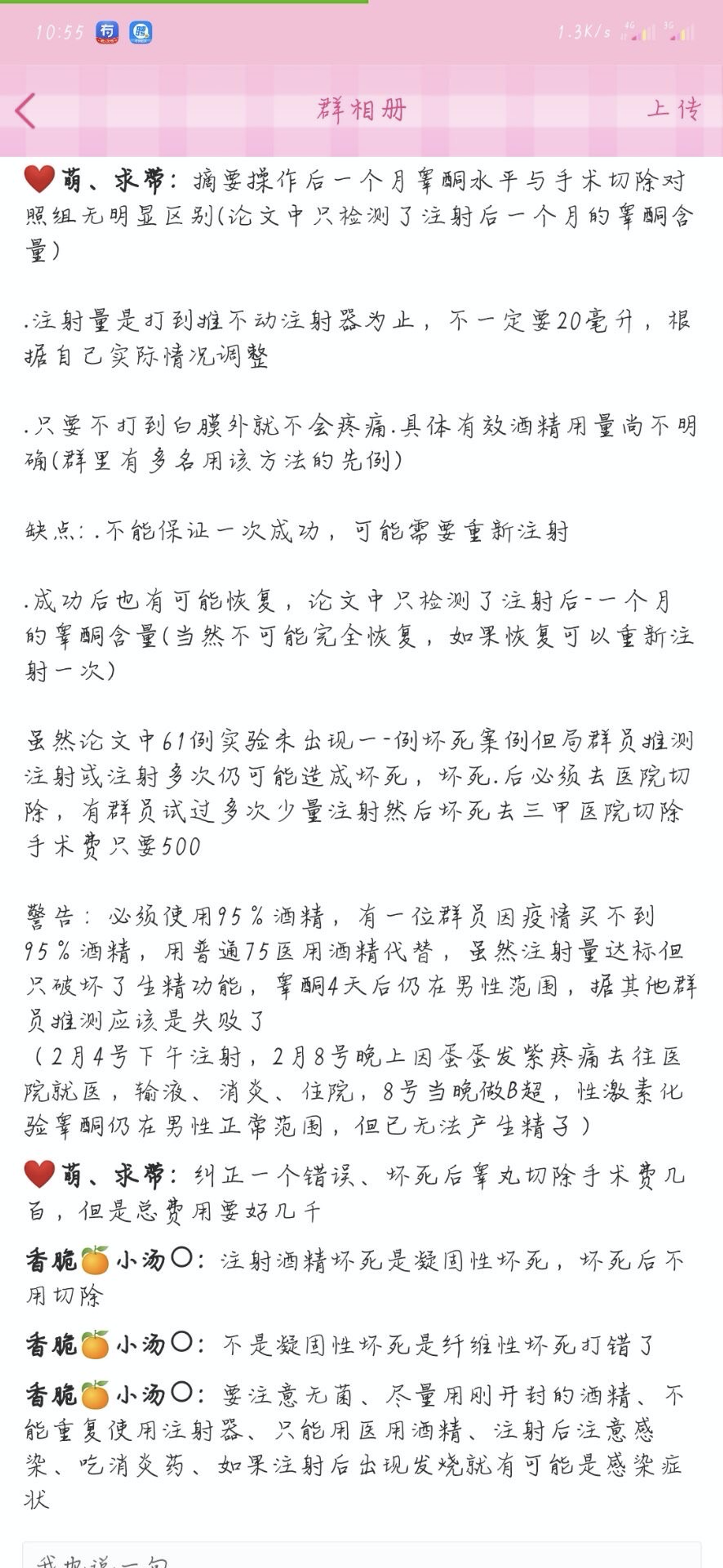 • 注射酒精使睾丸纤维化不需要去医院切除睾丸,切除睾丸会影响 srs 效果.